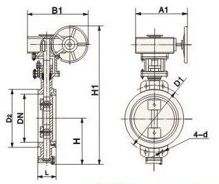 公稱(chēng)通經(jīng)(DN) | 主要尺寸 | 法蘭尺寸和螺栓規(guī)格 | | 1.0MPa | 1.6MPa | 2.5MPa | | L | H | H1 | D1 | 4-Ф-M | D1 | 4-Ф-M | D1 | 4-Ф-M | | 50 | 43 | 350 | 112 | 125 | Ф18 | 125 | Ф18 | 125 | Ф18 | | 65 | 46 | 370 | 115 | 145 | Ф18 | 145 | Ф18 | 145 | Ф18 | | 80 | 49 | 380 | 120 | 160 | Ф18 | 160 | Ф18 | 160 | Ф18 | | 100 | 56 | 420 | 138 | 180 | Ф18 | 180 | Ф18 | 190 | Ф23 | | 125 | 64 | 460 | 164 | 210 | Ф18 | 210 | Ф18 | 220 | Ф27 | | 150 | 70 | 555 | 175 | 240 | Ф23 | 240 | Ф23 | 250 | Ф27 | | 200 | 71 | 605 | 208 | 295 | M20 | 295 | M20 | 310 | M24 | | 250 | 76 | 680 | 243 | 350 | M20 | 355 | M24 | 370 | M27 | | 300 | 83 | 800 | 283 | 400 | M20 | 410 | M24 | 430 | M27 | | 350 | 92 | 835 | 310 | 460 | M20 | 470 | M24 | 490 | M30 | | 400 | 102 | 915 | 340 | 515 | M24 | 525 | M27 | 550 | M33 | | 450 | 114 | 960 | 380 | 565 | M24 | 585 | M27 | 600 | M33 | | 500 | 127 | 1020 | 410 | 620 | M24 | 650 | M30 | 660 | M33 | | 600 | 154 | 1225 | 470 | 725 | M27 | 770 | M33 | 770 | M36 | | 700 | 165 | 1355 | 550 | 840 | M27 | 840 | M33 | 875 | M39 | | 800 | 190 | 1470 | 640 | 950 | M30 | 950 | M36 | 990 | M45 | | 900 | 203 | 1545 | 710 | 1050 | M30 | 1050 | M36 | 1090 | M45 | | 1000 | 216 | 1795 | 770 | 1160 | M33 | 1170 | M39 | 1210 | M52 | | 1200 | 254 | 1965 | 890 | 1380 | M36 | 1390 | M45 | 1420 | M52 |