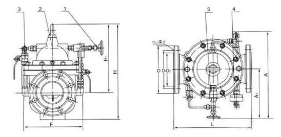當(dāng)水泵停止工作時(shí),電磁導(dǎo)閥先關(guān)閉,主閥控制室停止排水,控制室壓力升高,主閥開始關(guān)閉。當(dāng)關(guān)閉至90%時(shí),主閥上部行程開關(guān)輸出停泵信號(hào),水泵停止運(yùn)轉(zhuǎn)。此時(shí)下游回水經(jīng)單向閥進(jìn)入主閥控制室,控制室壓力升高,主閥被關(guān)閉 一、800X壓差旁通閥--概述