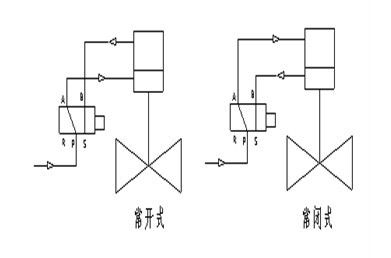 氣動(dòng)程控切斷閥--作用原理及結(jié)構(gòu)說(shuō)明 當(dāng)控制器按事先編好的程序?qū)δ硞€(gè)氣源換向閥輸出一個(gè)信號(hào),該換向閥動(dòng)作,使帶壓儀表氣源通過(guò)換向閥的切換進(jìn)入氣動(dòng)執(zhí)行機(jī)構(gòu)的氣缸上腔或下腔,推動(dòng)活塞運(yùn)動(dòng)使閥們開(kāi)啟或關(guān)閉。閥門(mén)的操作連接方式(如圖所示)。