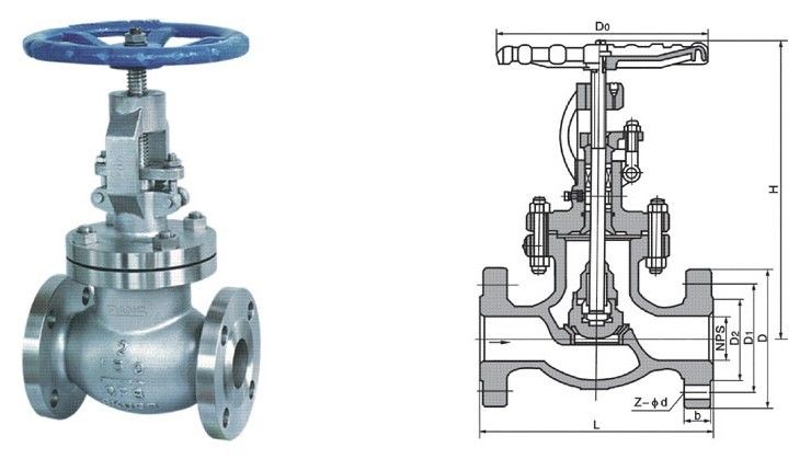 不銹鋼美標(biāo)法蘭截止閥美標(biāo)法蘭截止閥閥體采用球形結(jié)構(gòu),外形美觀,閥座閥瓣采用錐形密封結(jié)構(gòu),密封是可靠的。 法蘭連接鋼球閥適用于Class150300,工作溫度為29425(碳鋼)或40550(不銹鋼),用于切割或連接管道中的介質(zhì)??梢詥为?dú)使用不同的材料。 適用于水,蒸汽,油,硝酸,醋酸,氧化介質(zhì),尿素等介質(zhì)。 2507(UNSS32750)合金由25鉻,4鉬和7鎳組成。 具有很強(qiáng)的強(qiáng)度和耐腐蝕性,主要用于化學(xué)加工,石化和海底設(shè)備。 具有很強(qiáng)的耐氯化物腐蝕性,高導(dǎo)熱性和低熱膨脹系數(shù)。 鉻,鉬和氮含量較高,耐點(diǎn)蝕,縫隙和均勻腐蝕。 二,J41W法蘭美標(biāo)不銹鋼 截止閥的優(yōu)點(diǎn): 1。該產(chǎn)品的設(shè)計(jì)和制造符合美國國家標(biāo)準(zhǔn)ANSI B16.34,英國BS1873和其他國外先進(jìn)標(biāo)準(zhǔn)的要求。 2。閥門的外形為桶形或流線型,形狀美觀,流道形狀直通,流體阻力小。 3。關(guān)閉部分(閥門)和閥座的密封面由錐面密封,錐面具有小的閉合力,抗腐蝕性和可靠的密封性。 4。閥座可以是更換閥座,可以與關(guān)閉部件的密封材料結(jié)合使用,以滿足工作條件,延長使用壽命。 5,大口徑,高壓關(guān)閉截止閥根據(jù)閥桿傳動(dòng)方式的關(guān)閉力的需要被提升,并配備帶有沖擊手輪的滾動(dòng)軸承,以減小關(guān)閉力。 三, J41W法蘭美標(biāo) 不銹鋼截止閥制造標(biāo)準(zhǔn): 設(shè)計(jì)和制造標(biāo)準(zhǔn):API 6D 結(jié)構(gòu)長度標(biāo)準(zhǔn):ASME B16.10 壓力溫度額定值: ASME B16.341 測試檢驗(yàn)標(biāo)準(zhǔn):API 598 四,J41W法蘭美標(biāo)不銹鋼截止閥參數(shù): | DN | 150Lb 凸面法蘭(RF) 主要尺寸(mm) | 重量 | | mm | in | L | D | D1 | D2 | b | n-φd | H | D0 | | 15 | 1/2 | 108 | 89 | 60.5 | 35 | 11.2 | 4-16 | 241 | 100 | 6.9 | | 20 | 3/4 | 117 | 98 | 69.9 | 43 | 12.7 | 4-16 | 241 | 100 | 9.8 | | 25 | 1 | 127 | 108 | 79.2 | 51 | 14.2 | 4-16 | 242 | 125 | 13.5 | | 32 | 11/4 | 140 | 117 | 89 | 63 | 16 | 4-16 | 280 | 160 | 19.5 | | 40 | 11/2 | 165 | 127 | 98.6 | 73 | 17.5 | 4-16 | 286 | 160 | 28.5 | | 50 | 2 | 203 | 152 | 120.7 | 92 | 19 | 4-19 | 368 | 200 | 18 | | 65 | 21/2 | 216 | 178 | 139.7 | 105 | 22.4 | 4-19 | 387 | 200 | 30 | | 80 | 3 | 241 | 190 | 152.4 | 127 | 24 | 4-19 | 411 | 250 | 41 | | 100 | 4 | 292 | 229 | 190.5 | 157 | 24 | 4-19 | 454 | 250 | 64 | | 125 | 5 | 356 | 254 | 216.0 | 186 | 24 | 8-22.5 | 455 | 350 | 86 | | 150 | 6 | 406 | 279 | 241.3 | 216 | 25.4 | 8-22.5 | 541 | 350 | 113 | | 200 | 8 | 495 | 343 | 298.5 | 270 | 28.4 | 8-22.5 | 651 | 450 | 178 | | 250 | 10 | 622 | 406 | 362.0 | 324 | 30.2 | 12-25.4 | 800 | 450 | 270 | | 300 | 12 | 698 | 483 | 431.8 | 381 | 32 | 12-25.4 | 1231 | 600 | 350 | | 350 | 14 | 787 | 533 | 476.3 | 413 | 35 | 12-29 | 1450 | 600 | 460 | | 400 | 16 | 914 | 597 | 539.8 | 470 | 36.6 | 26-29 | 1645 | 600 | 590 |