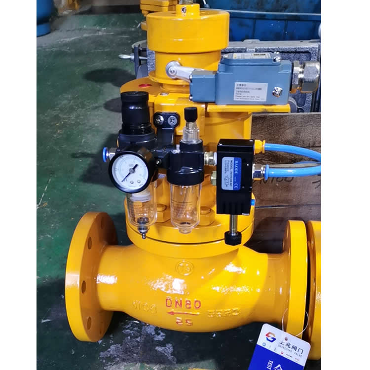 3、常開式可采用單作用代替或按要求訂做。 4、雙作用式工作原理:當(dāng)控制器按事先編好的程序?qū)δ硞€(gè)電磁換向閥輸出一個(gè)電信號(hào),該電磁換向閥動(dòng)作,使帶壓儀表氣源通過電磁換向閥的切換進(jìn)入氣動(dòng)執(zhí)行機(jī)構(gòu)的氣缸下腔推動(dòng)活塞向上運(yùn)動(dòng),活塞帶動(dòng)閥桿,閥桿提動(dòng)閥芯使閥門 開啟,切斷換向閥電信號(hào),使活塞反向運(yùn)動(dòng)使閥門關(guān)閉,這種閥門配置稱為常閉式。反之,要做成常開式只需在電磁換向閥與氣動(dòng)執(zhí)行機(jī)構(gòu)的連接方式變換一下就能實(shí)現(xiàn) 5、閥門工作介質(zhì)的流動(dòng)方向應(yīng)是高進(jìn)低出,與普通截止閥流向正好相反。 6、閥門法蘭的連接尺寸按JB/T79.1-94《凸面整體鑄鋼法蘭》或HG20592-97尺寸標(biāo)準(zhǔn)。 氨氣緊急切斷閥(氣動(dòng)緊急切斷閥)由多彈簧氣動(dòng)薄膜執(zhí)行機(jī)構(gòu)或浮動(dòng)式活塞執(zhí)行機(jī)構(gòu)與調(diào)節(jié)閥組成,接收調(diào)節(jié)儀表的信號(hào),控制工藝管道內(nèi)流體的切斷、接通或切換。具有結(jié)構(gòu)簡單,反應(yīng)靈敏,動(dòng)作可靠等特點(diǎn)。 可廣泛地應(yīng)用在石油、化工、冶金等工業(yè)生產(chǎn)部門。緊急切斷閥的氣源要求經(jīng)過濾的(壓縮空氣)氮?dú)狻?/div>