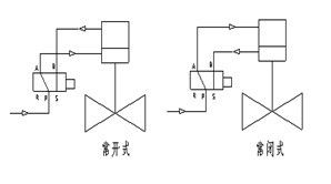氣動氧氣快速切斷閥--作用原理及結(jié)構(gòu)說明 當(dāng)控制器按事先編好的程序?qū)δ硞€電磁換向閥輸出一個電信號,該電磁換向閥動作,使帶壓儀表氣過電磁換向閥的切換進(jìn)入氣動執(zhí)行機(jī)構(gòu)的氣缸上腔或下腔,推動活塞運動使閥們開啟或關(guān)閉。閥門的工作流向應(yīng)是高進(jìn)低出(如圖所示)。 |