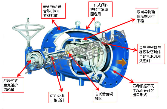 調(diào)流調(diào)壓閥又叫活塞式流量調(diào)節(jié)閥、活塞式流量控制閥,是用于水利輸水管道流量調(diào)節(jié)閥。該閥調(diào)節(jié)性能好,呈百分比調(diào)節(jié),使用平穩(wěn),不振動(dòng),使用壽命長,多搭配電動(dòng)執(zhí)行器,液壓執(zhí)行器操作,也可以手動(dòng)操作,是輸水管路調(diào)節(jié)的理想選擇。 調(diào)流調(diào)壓閥主要由閥體、閥座、活塞、閥軸、曲柄、連桿、驅(qū)動(dòng)銷、錐銷、軸承和操作機(jī)構(gòu)等零部件組成,通過曲柄連桿機(jī)構(gòu)將閥軸的轉(zhuǎn)動(dòng)轉(zhuǎn)化為活塞沿導(dǎo)軌的軸向移動(dòng),在活塞前后移動(dòng)的過程中,通過改變活塞與閥座之間的流通面積來實(shí)現(xiàn)流量調(diào)節(jié)及壓力控制。
