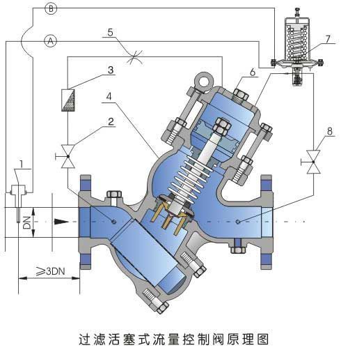 水利控制閥就是利用管道自身的介質(zhì)壓力控制的閥門 ![]() 水利控制閥就是利用管道自身的介質(zhì)壓力控制的閥門,水力控制閥由一個主閥及其附設(shè)的導(dǎo)管﹑導(dǎo)閥﹑針閥﹑球閥和壓力表等組成。根據(jù)使用目的﹑功能及場所的不同可演變成遙控浮球閥﹑減壓閥﹑緩閉止回閥﹑流量控制閥﹑泄壓閥。 水利控制閥--選用要點: ( 1 )工程式中應(yīng)用的水力控制閥是經(jīng)過制造廠檢驗合格,各種標(biāo)識齊全,技術(shù)資料符合要求的產(chǎn)品。 ( 2 )根據(jù)功能要求,選擇閥門種類,再根據(jù)管道輸送介質(zhì)、溫度、建筑標(biāo)準和業(yè)主 要要求 等,確定閥門的閥體和密封部位的材質(zhì)。常用的閥 體材料有鑄鐵 、銅鐵、銅、塑料等。常用的密封面和襯里材料有銅合金、塑料、鋼、硬質(zhì)合金、橡膠等。閥 體材料應(yīng)與管道材料相匹配。 ( 3 )閥門的公稱壓力有0.6、1.0、1.6、2.5和4.0MPa等不同級別,管道輸送的介質(zhì),其工作壓力應(yīng)小于閥門的公稱壓力值。 ( 4 )工程中水利控制閥的設(shè)置應(yīng)當(dāng)有足夠的空間,以便管理、操作、安裝和維修,并應(yīng)符合管路對閥門的要求。 ( 5 )管路采用法蘭連接時,應(yīng)采用法蘭連接的水力控制閥;管路采用溝槽式連接時,應(yīng)采用溝槽式連接的水利控制閥。 ( 6 )水利控制閥應(yīng)設(shè)置在介質(zhì)單向流動的管路上。 ( 7 )水利控制閥主閥體上的箭頭方向必須與管路系統(tǒng)流向一致。 ( 8 )接水利控制閥管段不 應(yīng)有氣堵 、氣阻現(xiàn)象。在管網(wǎng)最高位置 等存氣段 應(yīng)設(shè)置自動排氣閥。 ( 9 )閥門水平安裝時,閥蓋、閥桿應(yīng)朝上。垂直安裝時,閥蓋、閥桿應(yīng)朝外。 ( 10 )閥門安裝前應(yīng)做強度和嚴密性試驗。 ( 11 )閥門的強度和嚴密性試驗應(yīng)符合以下規(guī)定。 A、閥門的強度試驗壓力為公稱壓力的1.5倍; B、閥門的嚴密性試驗壓力為公稱壓力的1.5倍; C、試驗壓力在試驗持續(xù)時間內(nèi)應(yīng)保持不變,且殼體填料及閥瓣密封面無滲漏; D、閥門試驗持續(xù)時間按上表。 水利控制閥--原理構(gòu)造: 遙控浮球閥應(yīng)設(shè)置在水池或水箱的進水管道上,宜水平安裝,閥蓋朝上。其控制導(dǎo)管與浮球設(shè)置應(yīng)符合以下要求: 水利控制閥是以管道介質(zhì)壓力為動力,進行啟閉、調(diào)節(jié)的閥門。它由一個主閥和附設(shè)的導(dǎo)管、針閥、球閥和壓力表等組成、根據(jù)使用的目的、功能場所的不同,可演變成遙控浮球 閥、減壓閥、緩閉止回閥、流量控制器、泄壓閥、水力電動控制閥、緊急關(guān)閉閥等。 導(dǎo)閥隨介質(zhì)的液位和壓力的變化而動作,由于導(dǎo)閥種類很多,可以單獨使用或幾個組合使用, 就可以使主閥獲得對水位和水壓及流量等進行單獨和復(fù)合調(diào)節(jié)的功能。但主閥閥體類似截止閥,閥門全開時,其壓力損失比其他閥門要大得多,且各個開度損失系數(shù)越是與全閉狀 態(tài)接近,越是劇增,閥門口徑越大就越顯著。 YQ98001型過濾活塞式可調(diào)減壓閥--原理: YQ98001型過濾活塞式可調(diào)減壓閥由比托管傳遞壓差信號給流導(dǎo)閥, 限流閥和針閥執(zhí)行兩路控控制. 來控制主閥活塞上腔的壓力. 通過限流導(dǎo)閥調(diào)節(jié)摞栓的調(diào)節(jié). 使閥后流量達到設(shè)定值; 活塞下腔有節(jié)流孔與下游相通. 可綬沖閥門的關(guān)閉, 主閥兩端壓力差是閥門啟. 閉的驅(qū)動能源。主要用于空調(diào). 給排水. 消防和各類工礦企業(yè)等供水管網(wǎng)口需要過濾而且對流量實現(xiàn)控制的場所和工況。能將上游壓力降低至所設(shè)置的下游壓力,無論怎樣改變上游的壓力和流量,其預(yù)先設(shè)定的下游壓力均能夠保持不變。 產(chǎn)品外觀圖