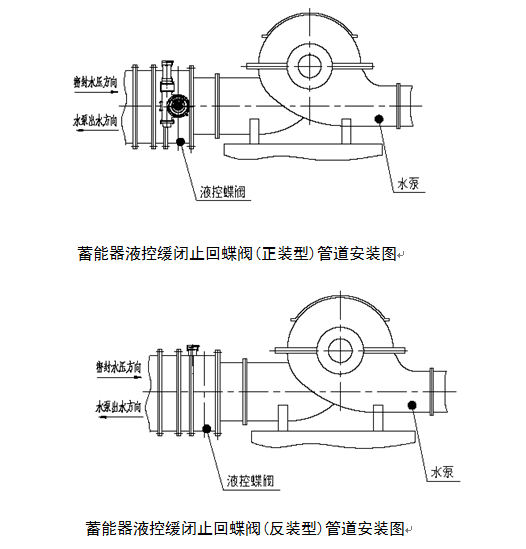 產(chǎn)品介紹 蓄能式液控緩閉止回蝶閥具備水泵出口的閘閥切斷功能和止回閥的止回功能,且集機(jī)、電、液系統(tǒng)于一體,占地面積小。蓄能器為閥門啟閉提供主動力源,可現(xiàn)場操作,也可微機(jī)集中控制;主要安裝于水電站、水輪機(jī)進(jìn)口,用作水輪機(jī)進(jìn)口閥或安裝于水利、電力、給排水等各類泵站的水泵出口。蓄能器式液控緩閉止回蝶閥由蝶閥、傳動機(jī)構(gòu)、液壓站、電控箱等四部分組成。 一、蓄能式液控止回蝶閥--產(chǎn)品簡介 : 蓄能液控緩閉止回蝶閥是目前國內(nèi)外管路控制設(shè)備,主要安裝于水電站水輪機(jī)進(jìn)口,用作水輪機(jī)進(jìn)口閥;或安裝于水利、電力、給排水等各類泵站的水泵出口,替代止回閥和閘閥的功能。工作時,閥門與管道主機(jī)配合,按照水力過渡過程原理,通過預(yù)設(shè)的啟閉程序,有效消除管路水錘實(shí)現(xiàn)管路的可靠截止,起到保護(hù)管路系統(tǒng)安全的作用。 1、可取代水泵出口處原電動閘閥和止回閥的功能,且機(jī)、電、液系統(tǒng)集成為一個整體,減少占地面積及基建投資。 2、電液控制功能齊全,無需另外配置即可以作為一個獨(dú)立的系統(tǒng)單機(jī)就地調(diào)試、控制;也可以作為集散性控制系統(tǒng)(DCS)的一個設(shè)備單元,通過1/0通道由中央計算機(jī)進(jìn)行集中管理,與水泵、水輪機(jī)、旁通閥及其他管道設(shè)備實(shí)現(xiàn)聯(lián)動操作;并配有手動功能,無動力電源時也可以實(shí)現(xiàn)手動開、關(guān)閥,滿足特殊工況下的閥門調(diào)試、控制要求。 3、可控性好,調(diào)節(jié)范圍大、適應(yīng)性強(qiáng)。電液控制系統(tǒng)設(shè)有多處調(diào)節(jié)點(diǎn),可以按不同的管道控制要求進(jìn)行啟閉程序設(shè)置保證在滿足開、關(guān)閥條件時,閥門能夠自動按預(yù)先設(shè)定的時間、角度開啟和分快、慢二階段關(guān)閉。并能實(shí)現(xiàn)無電關(guān)閥,有效消除破壞性水錘,防止水泵和水輪機(jī)組飛逸事故的發(fā)生,降低管網(wǎng)系統(tǒng)的壓力波動,保障設(shè)備的安全可靠運(yùn)行。 4、主閥密封副為三偏心金屬密封或雙偏心橡膠密封結(jié)構(gòu),啟閉輕松、密封可靠;并有一道額外加大的偏心,使閥門具有良好的自關(guān)閉、自密封性能。中、小口徑蝶板設(shè)計成流線型平板結(jié)構(gòu),大口徑蝶板設(shè)計面雙平板桁架工結(jié)構(gòu),排擠小,水流平順,閥門流阻系數(shù)僅為0.1~0.6,遠(yuǎn)小于止回閥的流阻系數(shù)(1.7~2.6),節(jié)能效果明顯。 二、蓄能式液控止回蝶閥--參數(shù)性能: 產(chǎn)品名稱:蓄能式液控緩閉止回蝶閥 所屬系列:蓄能式液控閥門 公稱通徑:DN100~DN4000 公稱壓力:PN2.5~PN64 適用介質(zhì):清水、泥沙水、海水、水庫水、油品、氣體等 介質(zhì)溫度:≤80℃ 開閥時間:3~120秒(可調(diào)) 關(guān)閥時間:3~120秒(可調(diào)) 動力電源:AC380V 控制電源:AC220V、DC220V、DC110V或DC24V 遠(yuǎn)程控制:開閥、關(guān)閥、停止 遠(yuǎn)程信號:無源的開關(guān)量信號、4~20mA模擬量閥位反饋信號 三、蓄能式液控止回蝶閥--產(chǎn)品結(jié)構(gòu)說明: 1、本產(chǎn)品主要由閥門本體、齒輪齒條傳動箱、液壓裝置、電氣控制箱等部分組成 2、閥門本體由閥體、蝶板、閥桿、滑動軸承、密封件等零件組成。 3、蓄能器式液控緩閉止回蝶閥一般采用臥式布置,也可根據(jù)用戶要求采用立式布置。 4、傳動機(jī)構(gòu)主要由齒輪箱、齒輪、齒條等連接、傳動件組成,是液壓動力開關(guān)閥門的主要執(zhí)行機(jī)構(gòu)。 5、臥式布置時,傳動機(jī)構(gòu)一般采用正向安裝;也可以根據(jù)用戶要求采用反向安裝(即傳動機(jī)構(gòu)位于閥門的另一側(cè))。 6、液壓站包括油泵機(jī)組、手動泵、蓄能器、電磁閥、溢流閥、流量控制閥、截止閥、液壓集成塊、油箱等部件。 7、蓄能器為閥門啟閉提供主要動力源、流量控制閥調(diào)節(jié)開關(guān)時間、溢流閥作為系統(tǒng)的安全閥、截止閥用作整個系統(tǒng)的卸壓。 8、液壓系統(tǒng)電磁的特征為:電磁閥得電蝶閥工作,失電蝶閥保位鎖定;采用其它作用型式應(yīng)在訂貨時說明。 9、液壓系統(tǒng)與閥門本體可以是整體式安裝,也可以是分體式安裝。用戶未作特殊說明時為分體式安裝。 四、工作原理及操作說明: 本閥電器控制系統(tǒng)主邏輯元件為PLC智能控制型,分以下幾種工況: 開閥離心泵工況(包括離心混流泵):先啟動泵,延長預(yù)定時間后開閥,或泵閥同時開啟。 開閥軸流泵工況(包括軸流混流泵):泵閥同時開啟,或開閥至一定角度,再啟動泵。 4.1自動保壓 合上空氣開關(guān),接通油泵電源AC380V、控制不間斷電源DC24V電源,電源指示燈亮。“轉(zhuǎn)換開關(guān)”旋到控制源右邊位置,控制系統(tǒng)自動保壓單元自動啟動,油泵自動啟動給系統(tǒng)充壓。當(dāng)壓力達(dá)到壓力繼電器高壓(15MPa)時,油泵停機(jī)。以后閥門操作無論處于什么狀態(tài),自動保壓功能都有效。即當(dāng)系統(tǒng)壓力低于壓力繼電器設(shè)定的低壓12MPa時,油泵自動啟動;當(dāng)系統(tǒng)壓力增至高壓設(shè)定15MPa時,油泵自動停機(jī)。 蓄能器存儲的能源足夠動力電源故障,油泵不能啟動時,一次全程開閥或關(guān)閥。將轉(zhuǎn)換開關(guān)旋