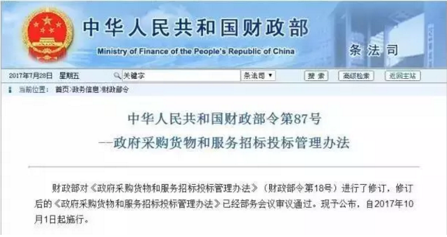 2017年10月1日起施行“最低價(jià)中標(biāo)”說再見! 近日,財(cái)政部印發(fā)財(cái)政部令87號(hào)《政府采購貨物和服務(wù)招標(biāo)投標(biāo)管理辦法》,該《辦法》提出:評(píng)標(biāo)委員會(huì)認(rèn)為投標(biāo)人的報(bào)價(jià)明顯低于其他通過符合性審查投標(biāo)人的報(bào)價(jià),有可能影響產(chǎn)品質(zhì)量或者不能誠信履約的,應(yīng)當(dāng)要求其在評(píng)標(biāo)現(xiàn)場(chǎng)合理的時(shí)間內(nèi)提供書面說明,必要時(shí)提交相關(guān)證明材料;投標(biāo)人不能證明其報(bào)價(jià)合理性的,評(píng)標(biāo)委員會(huì)應(yīng)當(dāng)將其作為無效投標(biāo)處理。 ![]() 該《辦法》有如下幾點(diǎn),需要大家注意: 第一、該投標(biāo)價(jià)格與其他投標(biāo)人相比的價(jià)格,參照對(duì)象是“其他投標(biāo)人的價(jià)格”,此處不是大家常說的“成本價(jià)”,因?yàn)椤俺杀緝r(jià)”有時(shí)的確很難直接判定,爭議也很大,直接與“其他標(biāo)人的價(jià)格”相對(duì)比,易操作,例如:若九個(gè)投標(biāo)人,八個(gè)投標(biāo)人報(bào)價(jià)為1億左右,另一位若是8000萬,可能就需要進(jìn)行“合理性”解釋。 第二、價(jià)格明顯低于其他投標(biāo)人的報(bào)價(jià)情況下,有可能影響產(chǎn)品質(zhì)量或者不能誠信履約。這里用詞是“有可能”,可以認(rèn)為若價(jià)格過低,都存在“有可能”,所以免不了要澄清。 第三、應(yīng)當(dāng)要求其在評(píng)標(biāo)現(xiàn)場(chǎng)合理的時(shí)間內(nèi)提供書面說明,必要時(shí)提交相關(guān)證明材料。這里要注意的是“評(píng)標(biāo)現(xiàn)場(chǎng)合理的時(shí)間”,這個(gè)意義重大,避免了場(chǎng)外人情,也是說“投標(biāo)”是否有效,當(dāng)場(chǎng)決定。 第四、投標(biāo)人不能證明其報(bào)價(jià)合理性的,評(píng)標(biāo)委員會(huì)應(yīng)當(dāng)將其作為無效投標(biāo)處理。這里用詞是“應(yīng)當(dāng)”,而不是“可以”,就是該《辦法》直接規(guī)定這種情況就是“無效投標(biāo)”。 目前,一些地方在招投標(biāo)中存在的“低價(jià)中標(biāo)”現(xiàn)象,導(dǎo)致在最低價(jià)中標(biāo)的競爭中,呈現(xiàn)良者退出和劣者胡來的困局。這已經(jīng)成為企業(yè)提升產(chǎn)品質(zhì)量的突出障礙,亟待治理和規(guī)范。而在基建和地產(chǎn)行業(yè)。最低價(jià)中標(biāo)往往使承建商無利可圖甚至賠本吆喝,承建商的應(yīng)對(duì)手段往往是工程停建、惡意拖欠薪酬等。最低價(jià)中標(biāo)往往從單純的經(jīng)濟(jì)糾紛,發(fā)酵成社會(huì)問題。 87號(hào)令要求有可能影響產(chǎn)品質(zhì)量或者不能誠信履約的報(bào)價(jià)提供說明或證明其合理性,勢(shì)必對(duì)最低價(jià)中標(biāo)的現(xiàn)象帶來一定遏制,“餓死同行、累死自己、坑死業(yè)主”現(xiàn)象有望得到改善! 中華人民共和國財(cái)政部令第87號(hào) ——政府采購貨物和服務(wù)招標(biāo)投標(biāo)管理辦法 財(cái)政部對(duì)《政府采購貨物和服務(wù)招標(biāo)投標(biāo)管理辦法》(財(cái)政部令第18號(hào))進(jìn)行了修訂,修訂后的《政府采購貨物和服務(wù)招標(biāo)投標(biāo)管理辦法》已經(jīng)部務(wù)會(huì)議審議通過?,F(xiàn)予公布,自2017年10月1日起施行。 部長 肖捷 2017年7月11日 第一章 總 則 第一條 為了規(guī)范政府采購當(dāng)事人的采購行為,加強(qiáng)對(duì)政府采購貨物和服務(wù)招標(biāo)投標(biāo)活動(dòng)的監(jiān)督管理,維護(hù)國家利益、社會(huì)公共利益和政府采購招標(biāo)投標(biāo)活動(dòng)當(dāng)事人的合法權(quán)益,依據(jù)《中華人民共和國政府采購法》(以下簡稱政府采購法)、《中華人民共和國政府采購法實(shí)施條例》(以下簡稱政府采購法實(shí)施條例)和其他有關(guān)法律法規(guī)規(guī)定,制定本辦法。 第二條 本辦法適用于在中華人民共和國境內(nèi)開展政府采購貨物和服務(wù)(以下簡稱貨物服務(wù))招標(biāo)投標(biāo)活動(dòng)。 第三條 貨物服務(wù)招標(biāo)分為公開招標(biāo)和邀請(qǐng)招標(biāo)。 公開招標(biāo),是指采購人依法以招標(biāo)公告的方式邀請(qǐng)非特定的供應(yīng)商參加投標(biāo)的采購方式。 邀請(qǐng)招標(biāo),是指采購人依法從符合相應(yīng)資格條件的供應(yīng)商中隨機(jī)抽取3家以上供應(yīng)商,并以投標(biāo)邀請(qǐng)書的方式邀請(qǐng)其參加投標(biāo)的采購方式。 第四條 屬于地方預(yù)算的政府采購項(xiàng)目,省、自治區(qū)、直轄市人民政府根據(jù)實(shí)際情況,可以確定分別適用于本行政區(qū)域省級(jí)、設(shè)區(qū)的市級(jí)、縣級(jí)公開招標(biāo)數(shù)額標(biāo)準(zhǔn)。 第五條 采購人應(yīng)當(dāng)在貨物服務(wù)招標(biāo)投標(biāo)活動(dòng)中落實(shí)節(jié)約能源、保護(hù)環(huán)境、扶持不發(fā)達(dá)地區(qū)和少數(shù)民族地區(qū)、促進(jìn)中小企業(yè)發(fā)展等政府采購政策。 第六條 采購人應(yīng)當(dāng)按照行政事業(yè)單位內(nèi)部控制規(guī)范要求,建立健全本單位政府采購內(nèi)部控制制度,在編制政府采購預(yù)算和實(shí)施計(jì)劃、確定采購需求、組織采購活動(dòng)、履約驗(yàn)收、答復(fù)詢問
