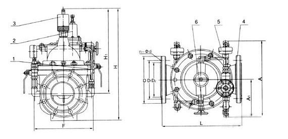 1、球閥2、導(dǎo)閥3、流量調(diào)節(jié)閥4、主閥5、壓力表6、針閥